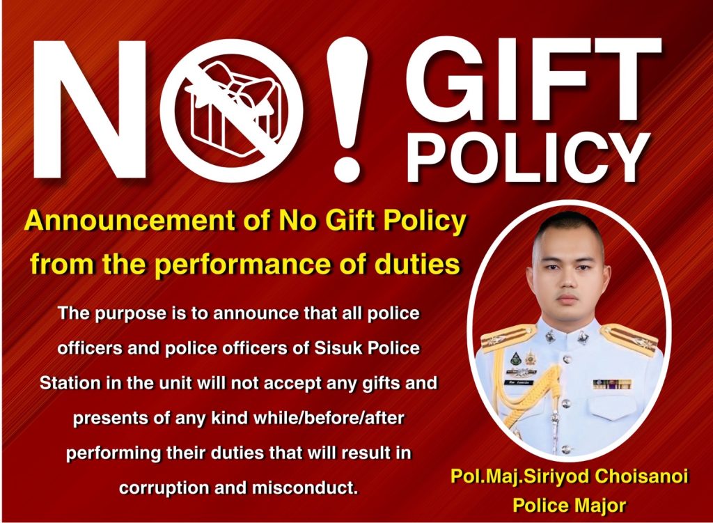 ประกาศนโยบายต่อต้านการรับสินบน (Anti-Bribery Policy) และนโยบายไม่รับของขวัญและของกำนัลทุกชนิด (No Gift Policy) จากการปฏิบัติหน้าที่